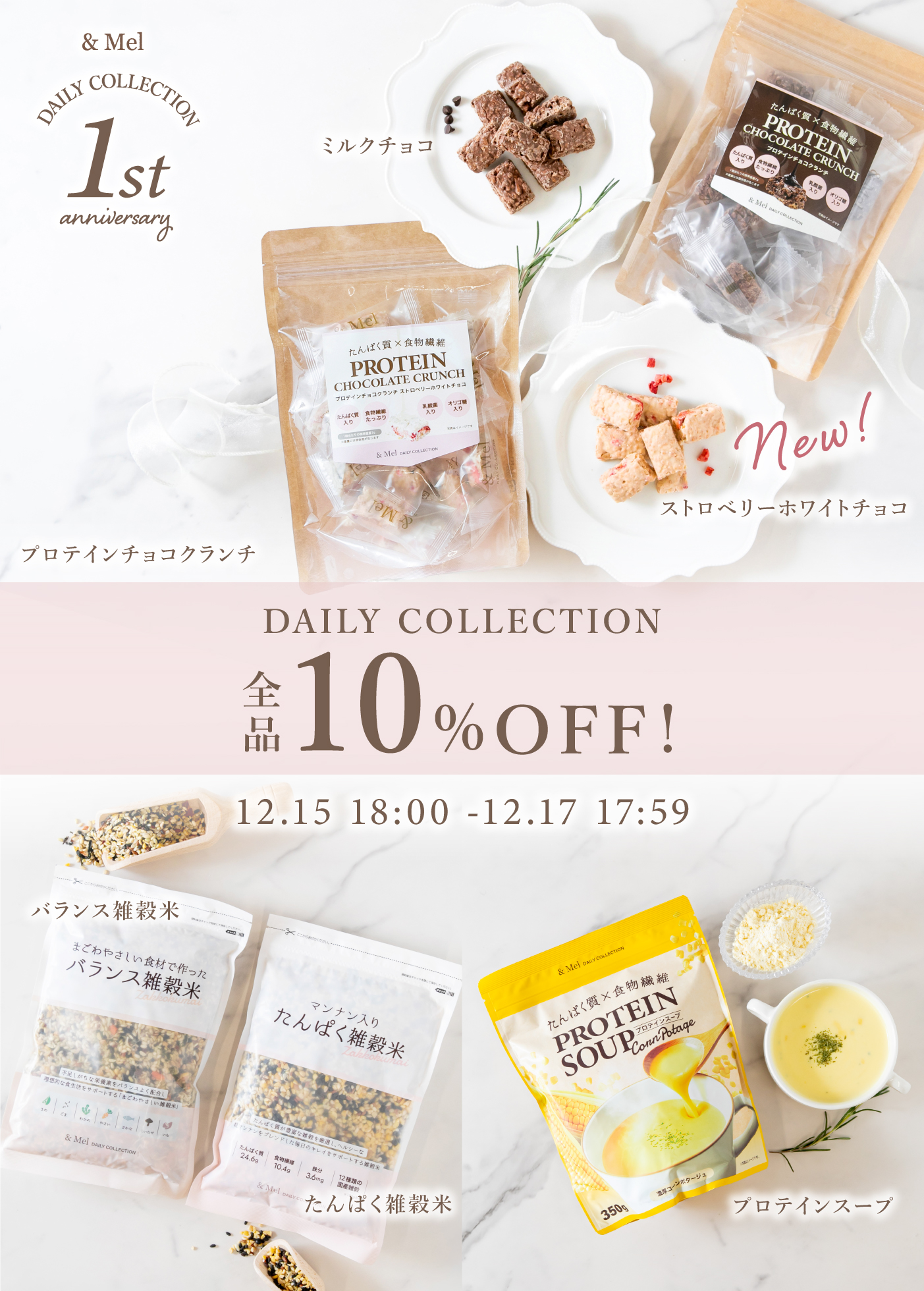 新商品の「プロテインチョコクランチ(ストロベリーホワイトチョコ)」を含む、